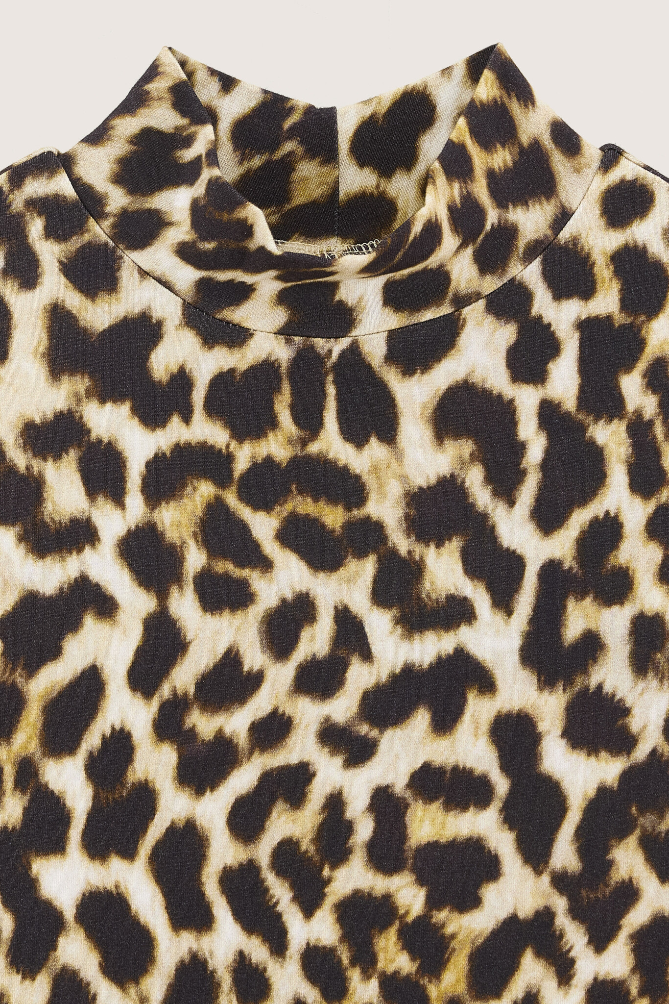 • Bellerose souspull met panterprint, 96,5% modal, 3,5% elasthaan. De modalvezel is een verdere ontwikkeling van viscose, dus een kunstmatige vezel uit natuurlijke grondstoffen in dit geval cellulose verkregen uit beukenhout.
